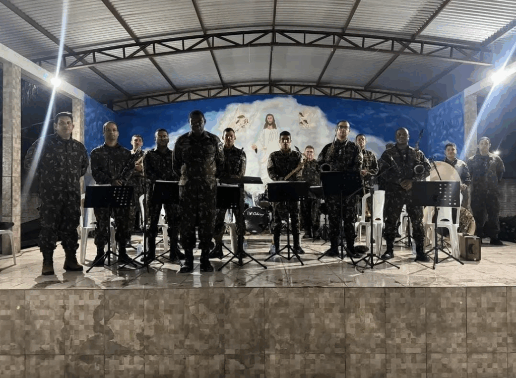 Um dos momentos mais especiais da noite foi a participação da banda do 61º Batalhão de Infantaria (61 BIS), que emocionou os presentes com uma belíssima apresentação musical, tornando a celebração ainda mais significativa e solene.