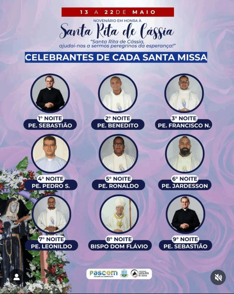 A noite foi profundamente abençoada, reunindo fiéis em oração e preparando espiritualmente a comunidade para os dias seguintes de novena. As homenagens a Santa Rita seguem até o dia 22 de maio, com uma programação repleta de momentos de fé e devoção.