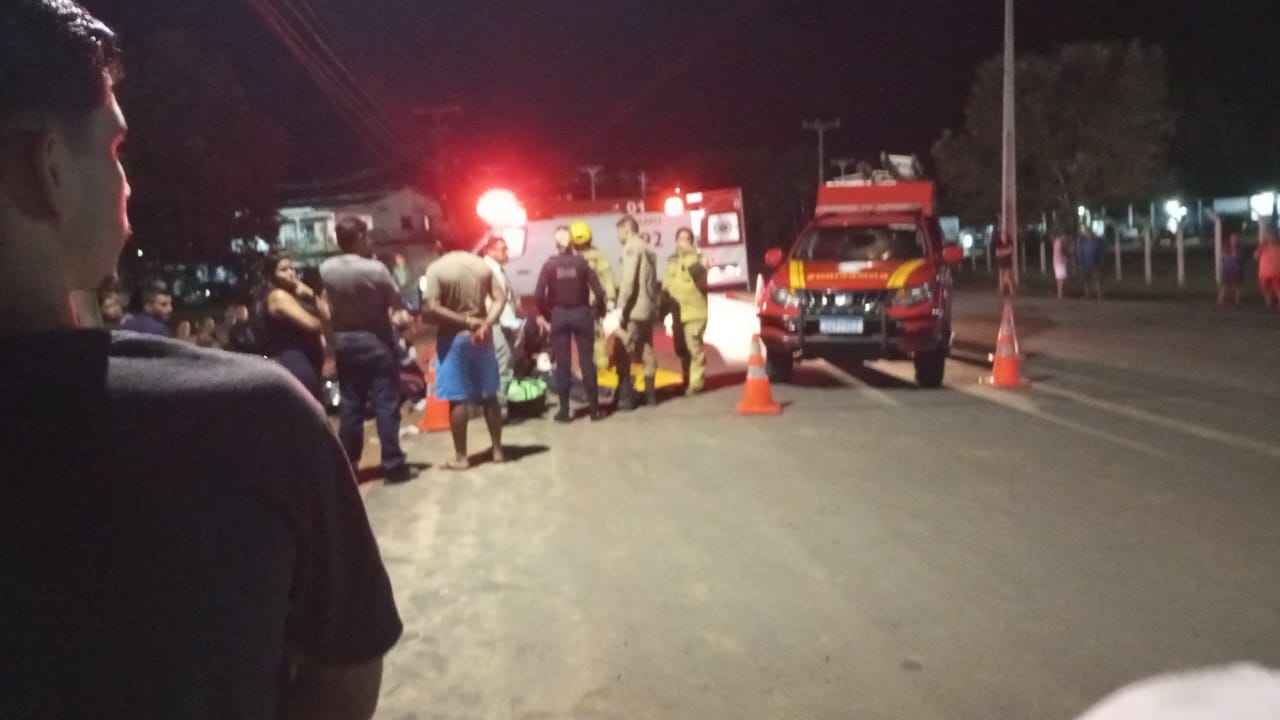 Um acidente de trânsito foi registrado na noite desta sexta-feira (9), na região do Deracre, envolvendo um carro Volkswagen Voyage e uma motocicleta.
