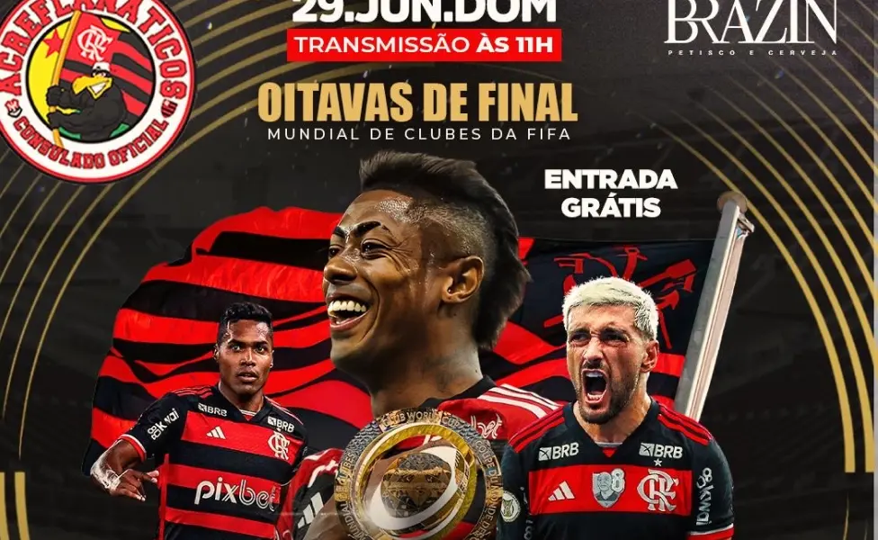 A torcida organizada do Clube de Regatas Flamengo no Acre, os Acreflanáticos, promove um novo encontro neste domingo (29) para acompanhar a partida entre Flamengo e Bayern de Munique, válida pelas oitavas de final da Copa do Mundo de Clubes da FIFA 2025.