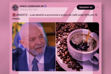 A postagem investigada traz um desenho de uma sirene luminosa ao lado da frase “URGENTE – Lula destrói a economia e preço do café sobe 82% em 12 meses”. A publicação coloca lado a lado imagens do rosto de Lula e de uma xícara de café. Com esses elementos, o post associa o aumento no preço do produto ao governo Lula. Não há referências a fontes que tenham servido de embasamento à publicação.
