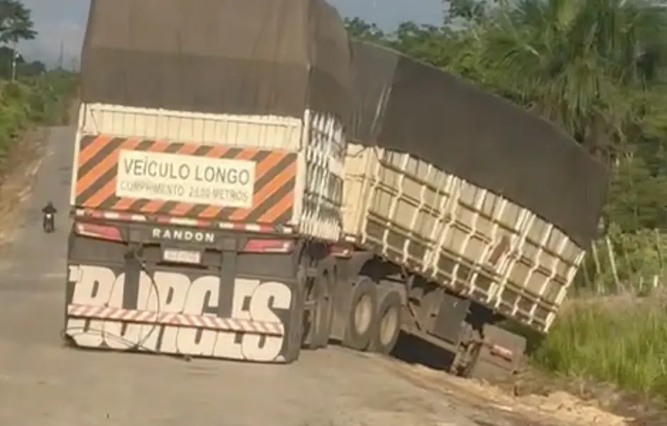 Outro caminheiro, que filmou o caminhão às margens da rodovia federal, falou dos buracos e da situação da BR-364.