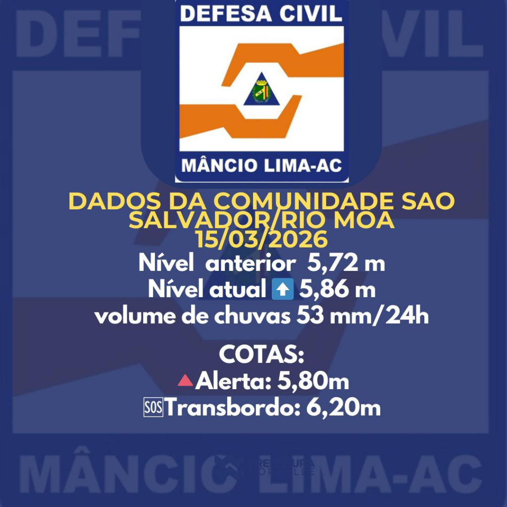 Mesmo assim, equipes da Defesa Civil e da Prefeitura de Mâncio Lima permanecem de plantão, realizando monitoramento em tempo real dos rios Môa e Azul para acompanhar qualquer mudança no cenário.