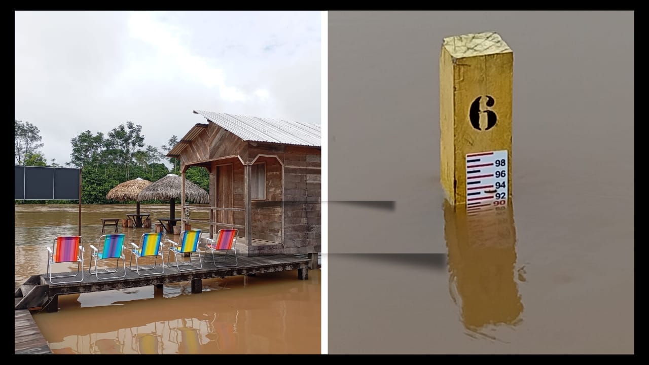 Na ocasião, um vídeo enviado à redação mostrou a forte subida do Rio Moa, que atingiu a Pousada Caminhos das Cachoeiras e outras localidades da região. As imagens revelaram parte da estrutura da pousada quase submersa, com chalés invadidos pela água e o deck completamente tomado pela cheia.
