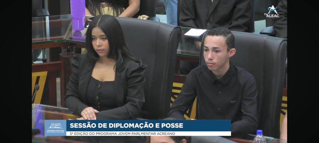 A cerimônia de posse também foi acompanhada pelo professor José Aldenir, diretor da Escola Integral Francisco Freire de Carvalho, que esteve presente na Assembleia Legislativa do Acre apoiando o estudante durante esse importante momento.
