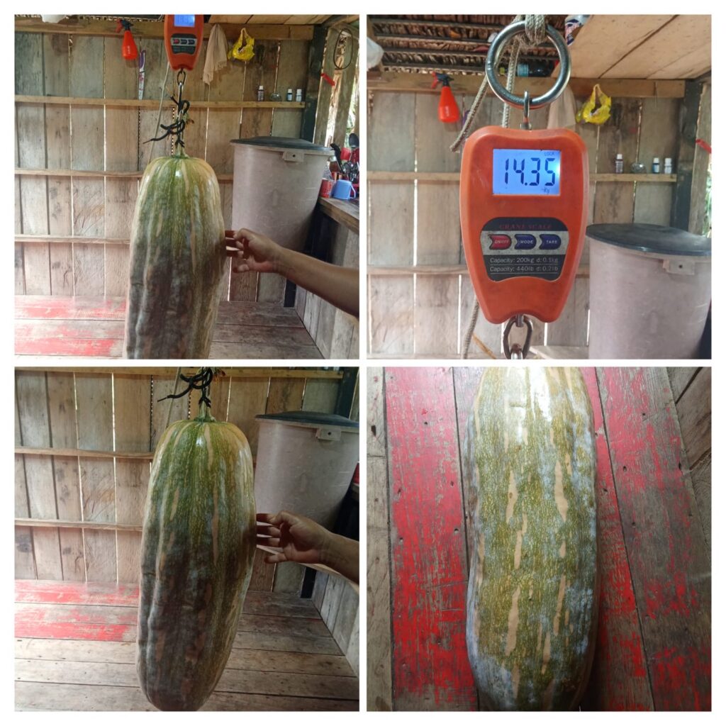 A agricultura Maria José Moura de Andrade, da comunidade Foz do Tejo, às margens do Rio Juruá, em Marechal Thaumaturgo, foi surpreendida ao colher um jerimum que chamou a atenção pelo tamanho: a hortaliça pesou impressionantes 14,35 quilos.