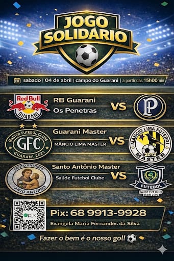 Neste sábado, 4 de abril, o Campo do Guarani será palco de um evento especial que une esporte e solidariedade. A partir das 15h, acontece o Jogo Solidário, reunindo equipes locais em partidas amistosas com um objetivo maior: ajudar quem precisa.