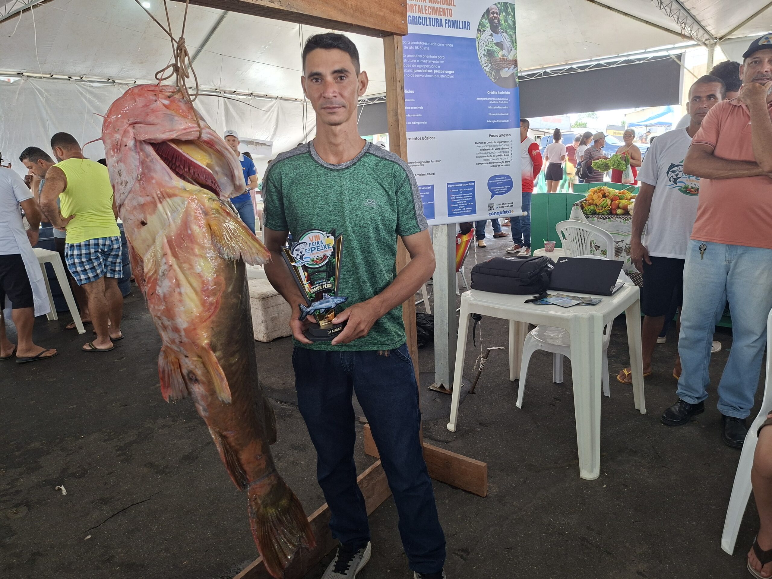 Um verdadeiro gigante das águas chamou a atenção na VIII Feira do Peixe de Mâncio Lima. O pescador Ernildo Dantas foi o grande vencedor do concurso de maior peixe da feira ao apresentar um impressionante jundiá de 40 quilos, capturado no Rio Japiim.