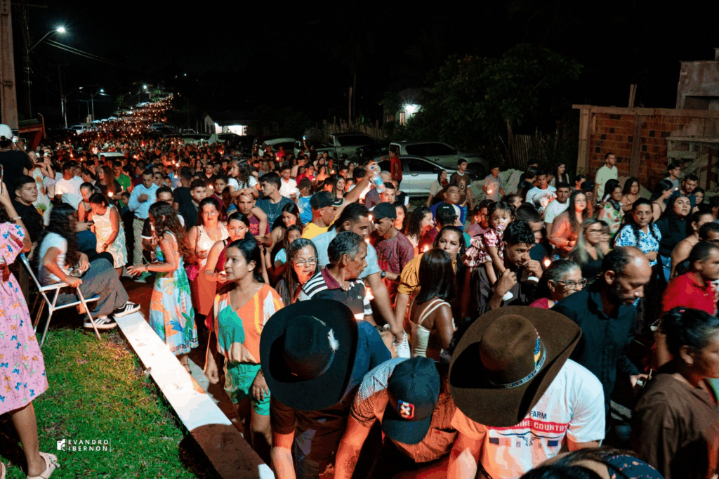 A grandiosa procissão, com mais de 2 km de percurso, emocionou a cidade. Fiéis de todas as idades seguiram pelas ruas com velas acesas, entoando cânticos e rezando por paz, amor e renovação da fé. Muitos trajavam o manto marrom — símbolo do hábito franciscano —, que representa humildade, simplicidade e desapego material.