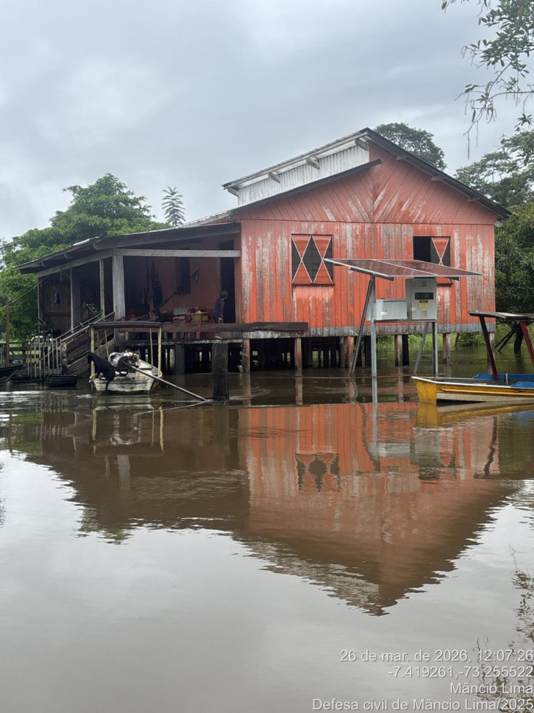 A cheia já causa prejuízos à infraestrutura, dificulta o acesso a comunidades rurais e ribeirinhas e afeta a agricultura de subsistência. A previsão de mais chuvas nos próximos dias mantém o cenário de atenção, com risco de agravamento da situação nas áreas atingidas.