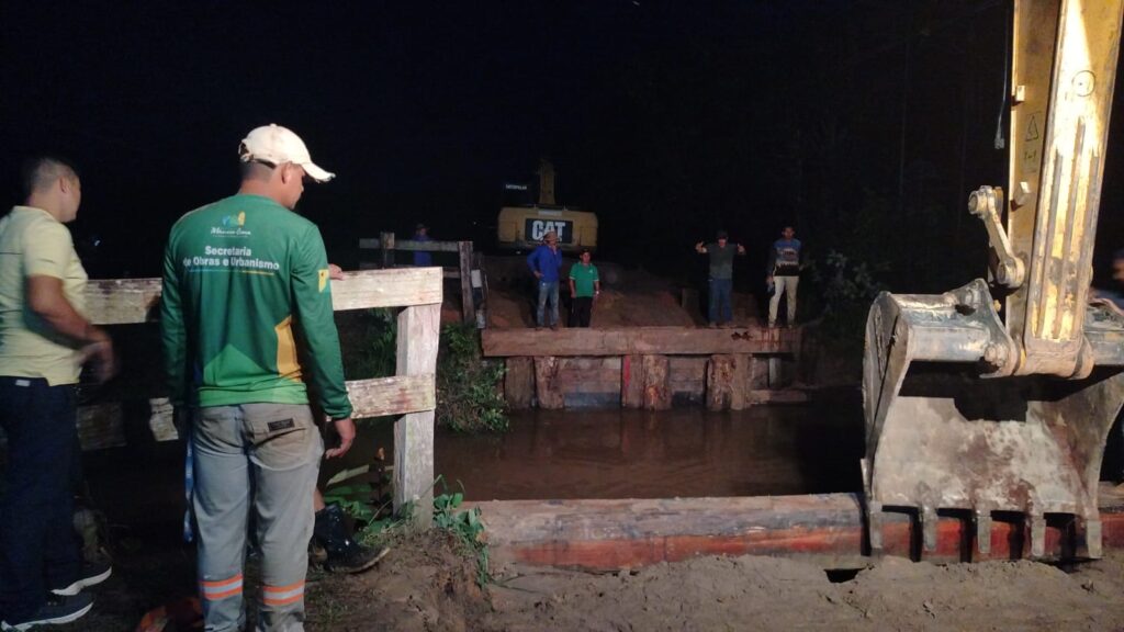 A Prefeitura de Mâncio Lima deu início, na tarde desta terça-feira (20), aos trabalhos de recuperação da ponte localizada no Ramal do Banho. A intervenção começou por volta das 13h e deve ser concluída até a tarde de quarta-feira (21).