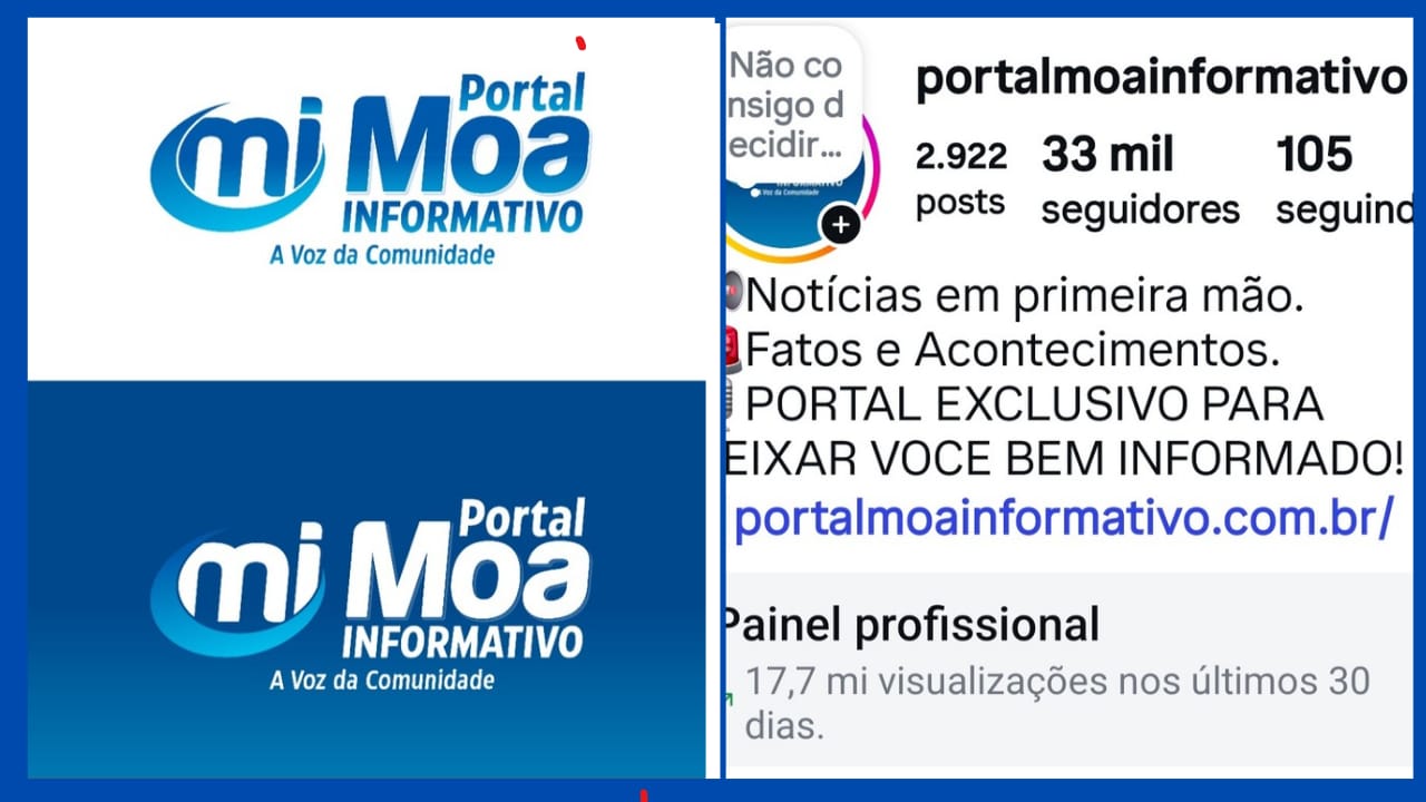 Criado em fevereiro, o Portal Moa Informativo está prestes a completar um ano de atuação e já comemora números expressivos no Instagram. A página alcançou 33 mil seguidores e ultrapassou 17 milhões de visualizações nos últimos 30 dias, consolidando-se como um dos portais que mais crescem na região.