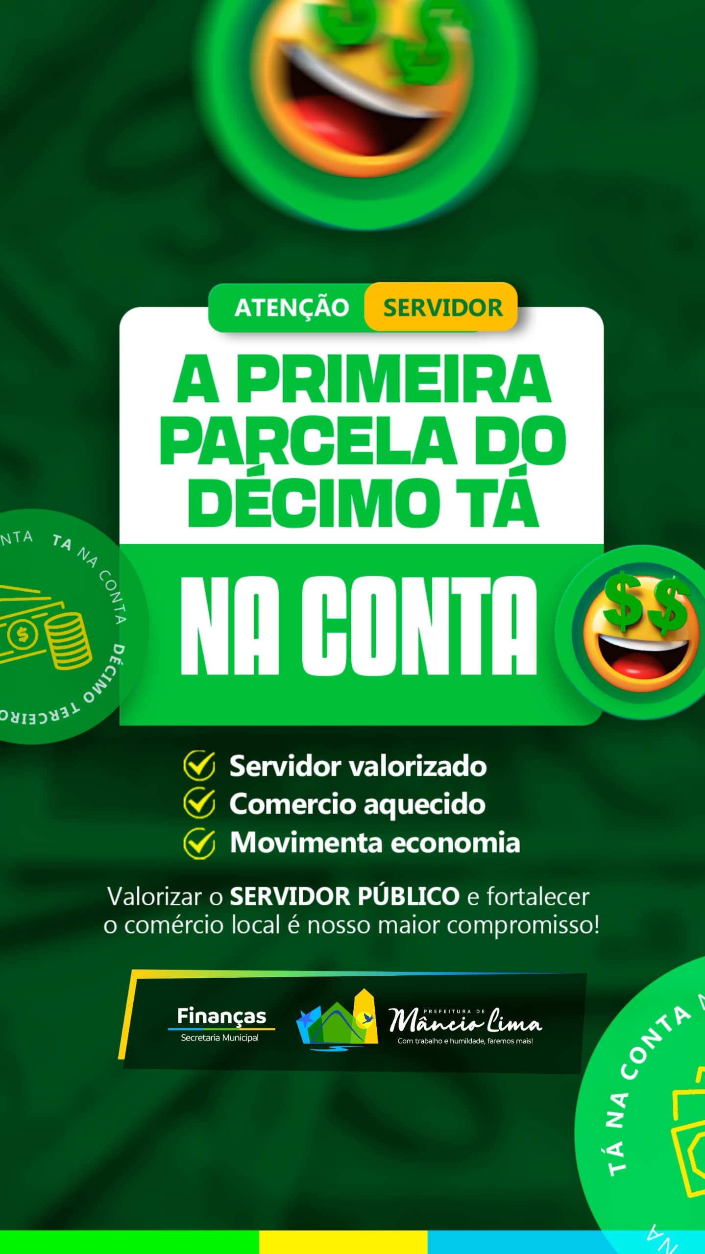 A Prefeitura de Mâncio Lima, por meio da Secretaria Municipal de Finanças, anunciou nesta quinta-feira (18) o pagamento da primeira parcela do 13º salário aos servidores públicos municipais. A iniciativa reforça o compromisso da gestão com a valorização dos trabalhadores e com o fortalecimento da economia local.