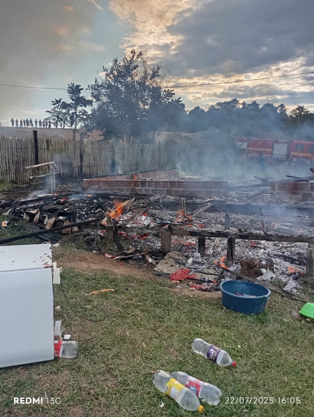Um vizinho, ao perceber o incêndio, conseguiu adentrar a residência e retirar alguns itens antes que o fogo consumisse completamente o imóvel. Entre os bens salvos estão uma geladeira, dois fogões, uma botija de gás, um carro de mão, utensílios domésticos, roupas e pertences diversos.